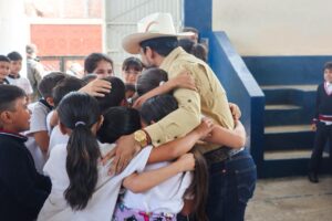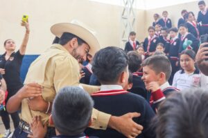 Durante la visita, el Presidente Municipal vivió un momento cercano y significativo con los estudiantes, quienes al finalizar las actividades mostraron su entusiasmo y cariño, acercándose para convivir y solicitar autógrafos, reflejando el impacto positivo de estas acciones en la comunidad escolar.
